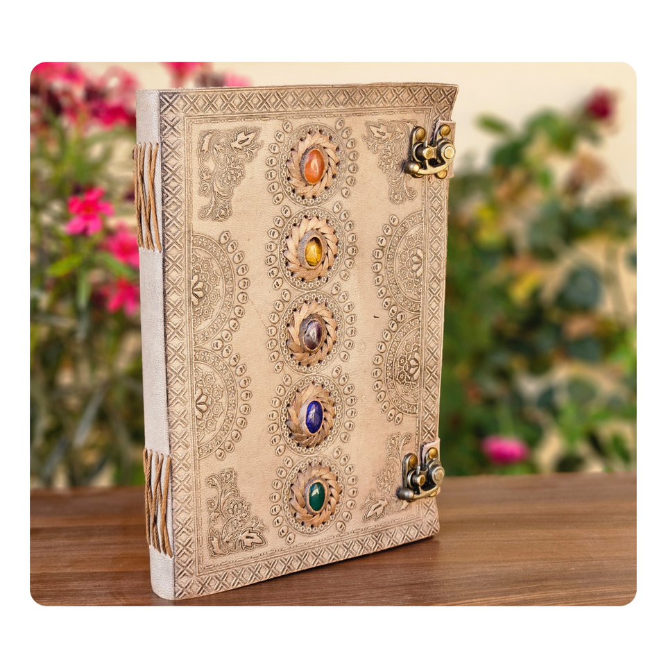 ไดอารี่หนังสไตล์วินเทจคลาสสิกวารสารงานแฮนด์เมดลายนูน5ชิ้นพร้อมอัญมณีล้ำค่าและสลักทองเหลืองสำหรับการเขียนธุรกิจ