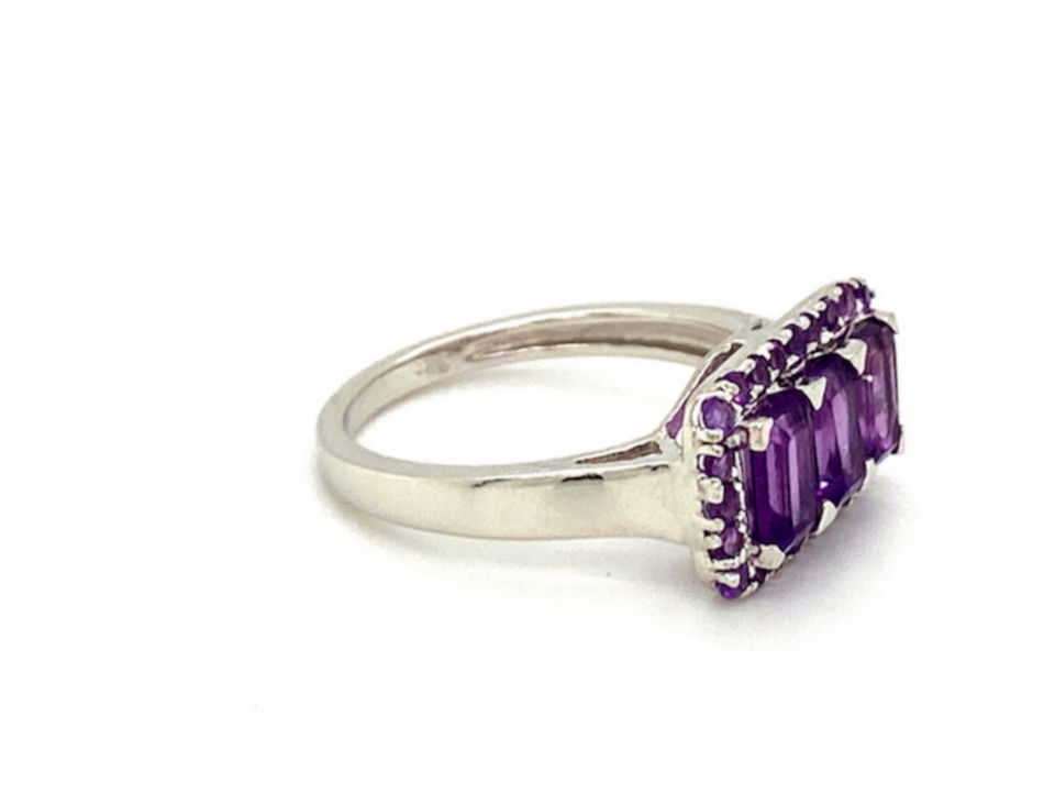 แหวนแต่งงานทองคำขาว14K สไตล์วินเทจคลาสสิกประดับพลอยบุษราคัมสีม่วงชุบโรเดียมแฟชั่นหรูหราส่งตรงจากอินเดีย