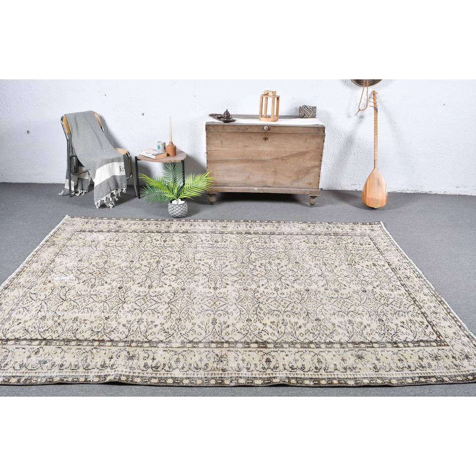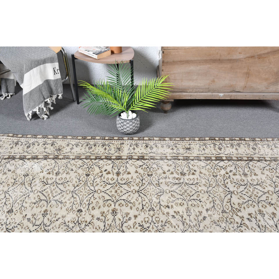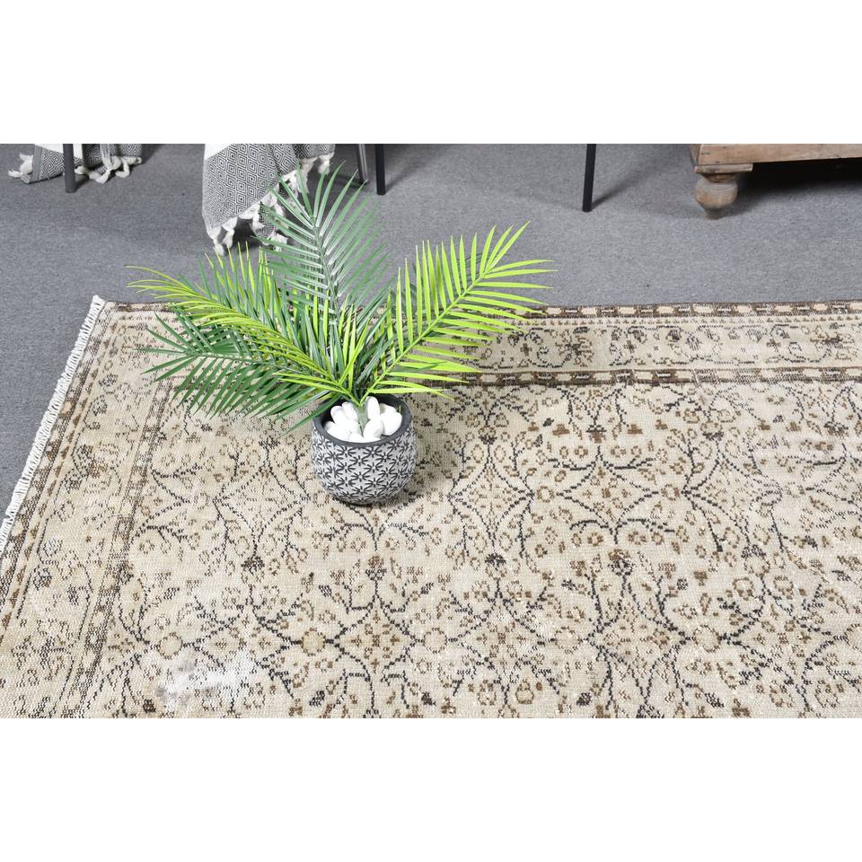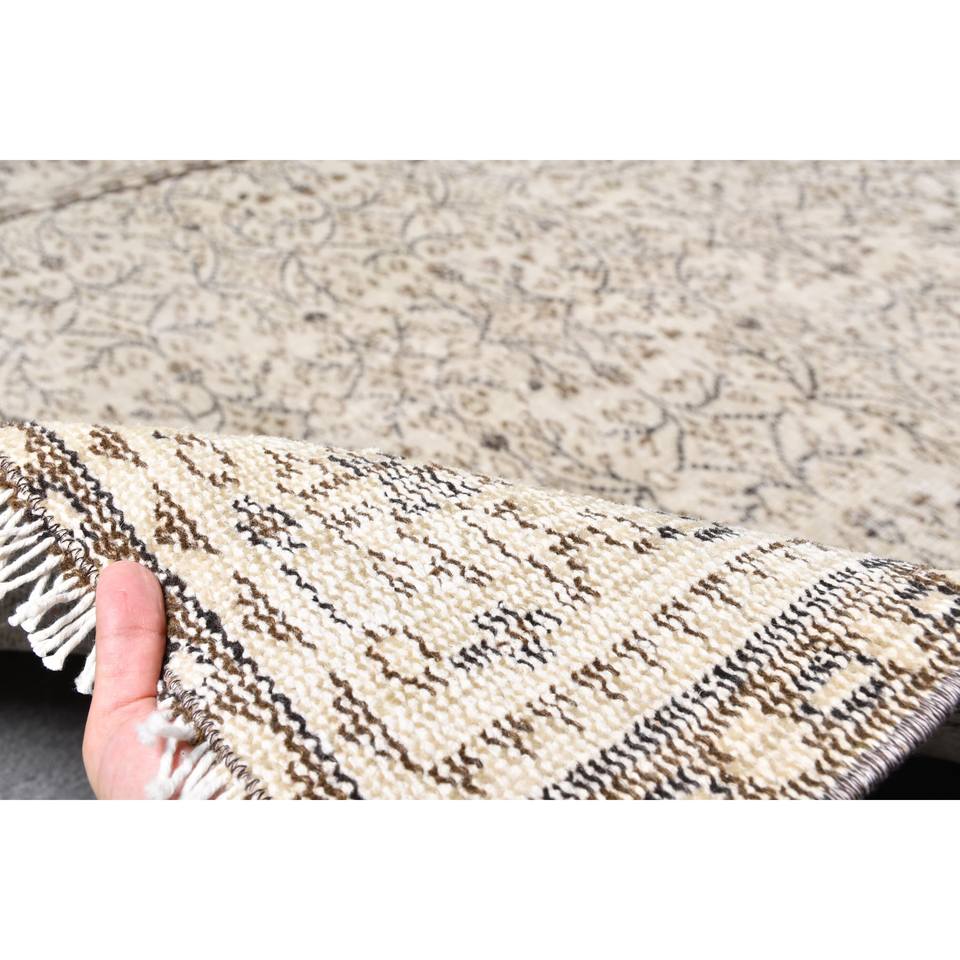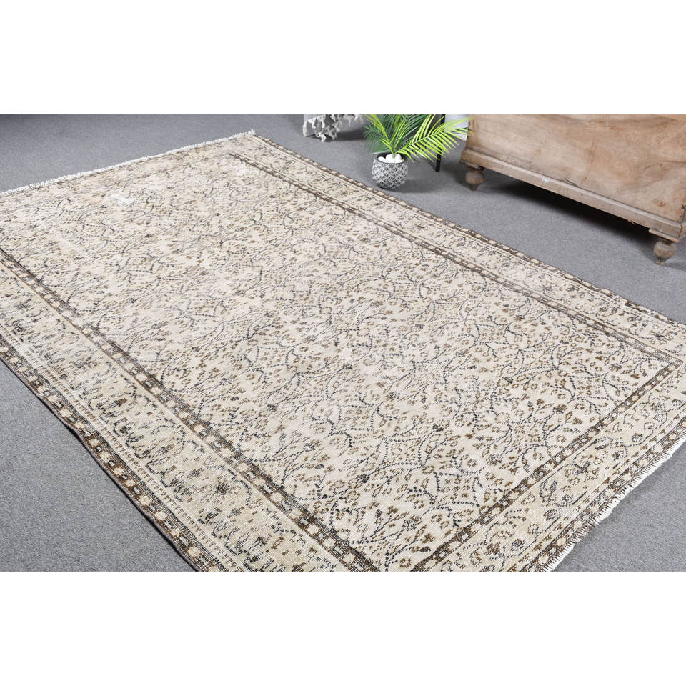 พรมตุรกีโบราณคลาสสิกขนาด5.8x8.7ฟุตสีเบจสีน้ำตาลเย็บปะติดปะต่อกันขนกระต่ายปลอมห้องโถงสี่เหลี่ยมสำหรับข้างเตียง