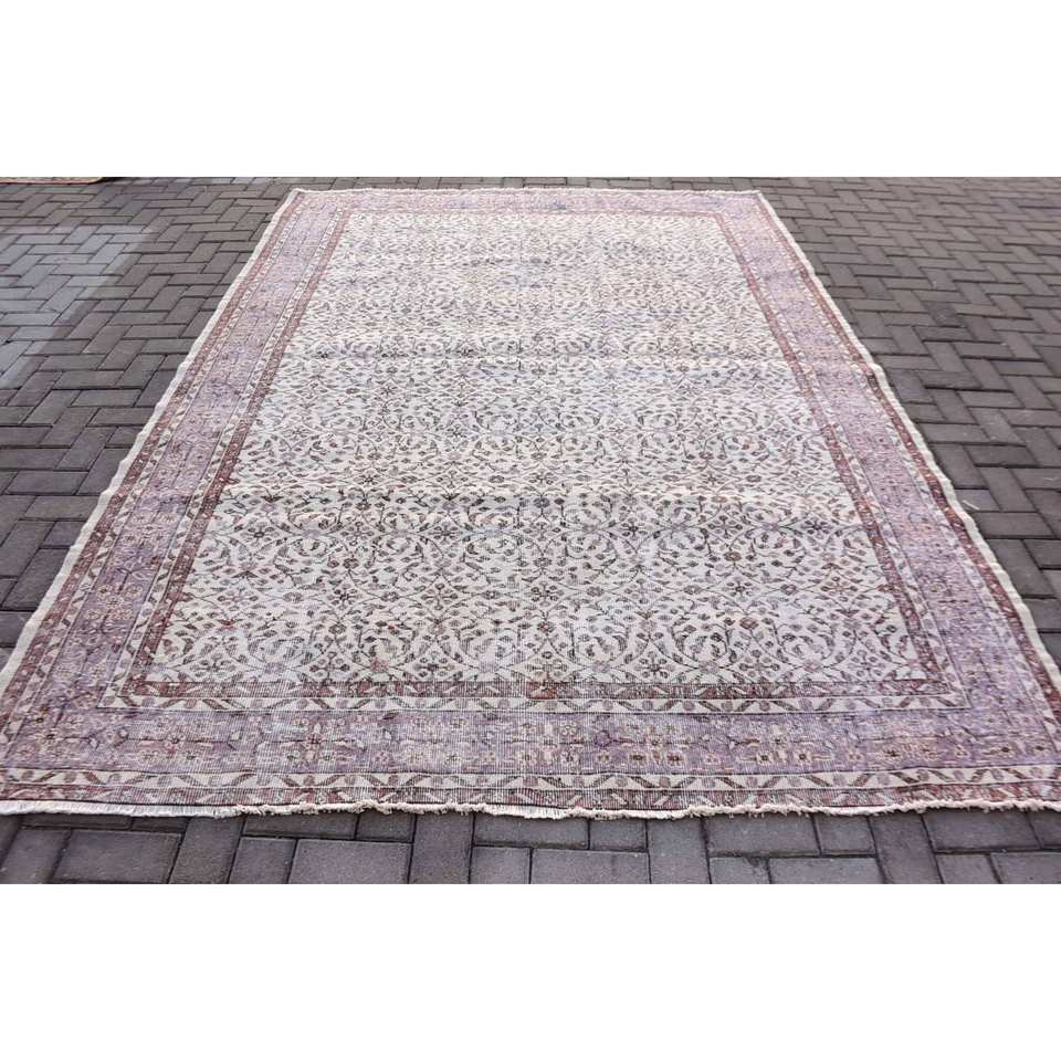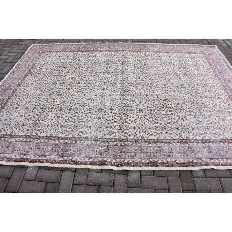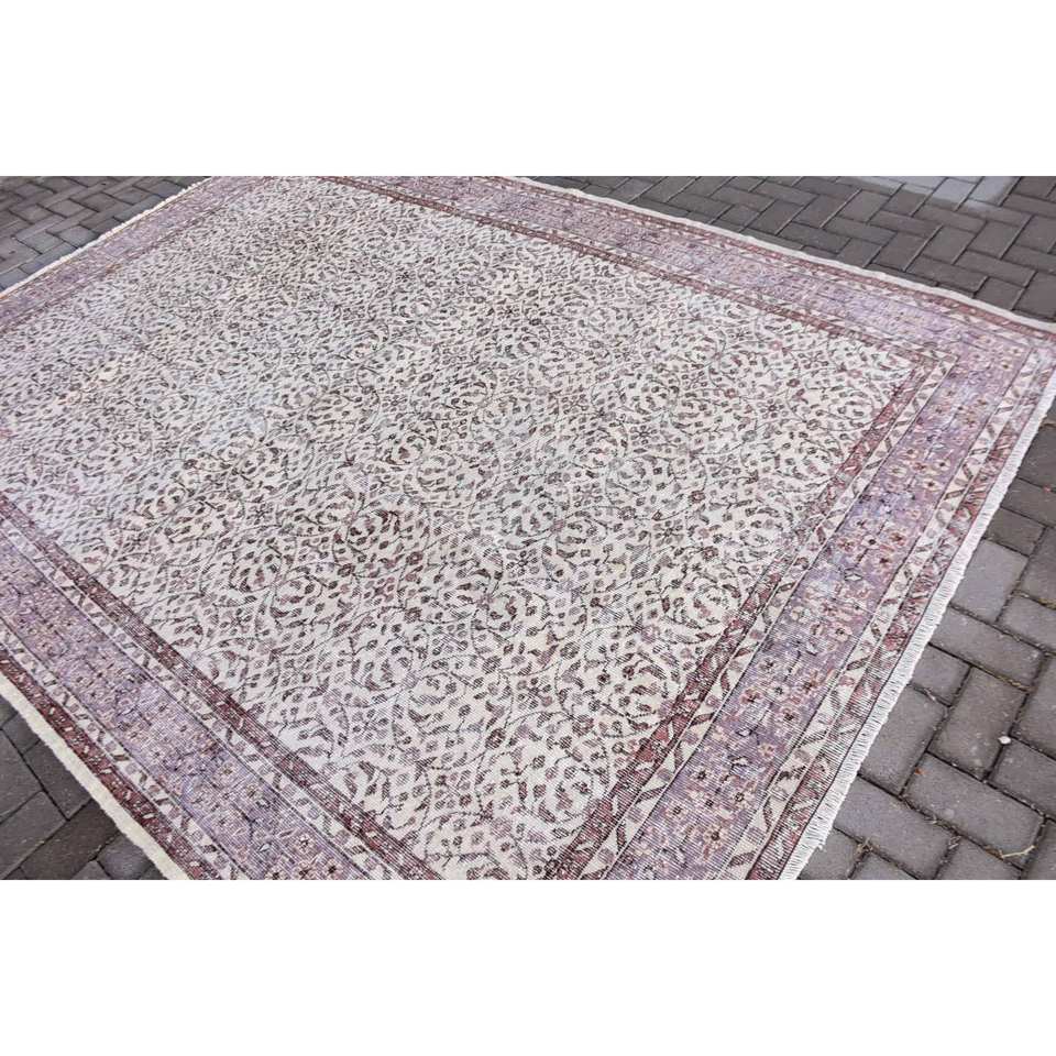 Classic Vintage Turkish Rug 7.2 X 10 ft Rectangular Large Area White Brown Patchwork Design Organic Cotton Plush Pile Latex
