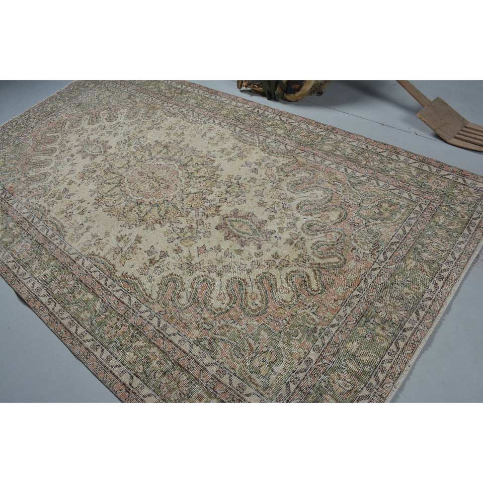 พรมขนแกะสไตล์ตุรกีโบราณคลาสสิกสีเบจสีเขียวขนาด5.7x9.9ฟุตถักทอแบบแบนมีลวดลายเย็บปะติดปะต่อกันสำหรับตกแต่งห้องนั่งเล่นทางเดิน