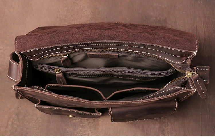 กระเป๋าสะพายพาดลำตัวหนังแท้ยูนิเซ็กส์แนววินเทจคลาสสิกพร้อมฝาปิดแบบซิปสามารถนำกลับมาใช้ใหม่ได้จุได้เยอะสำหรับธุรกิจกลางแจ้งใช้งานประจำวัน
