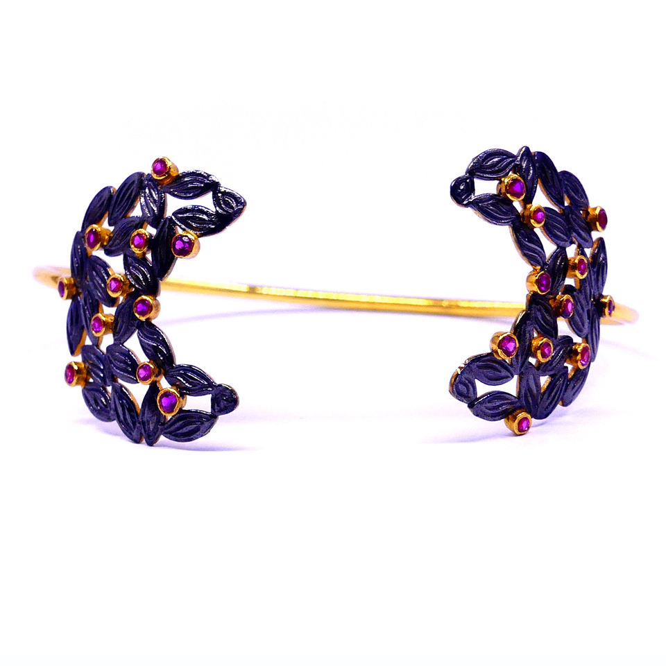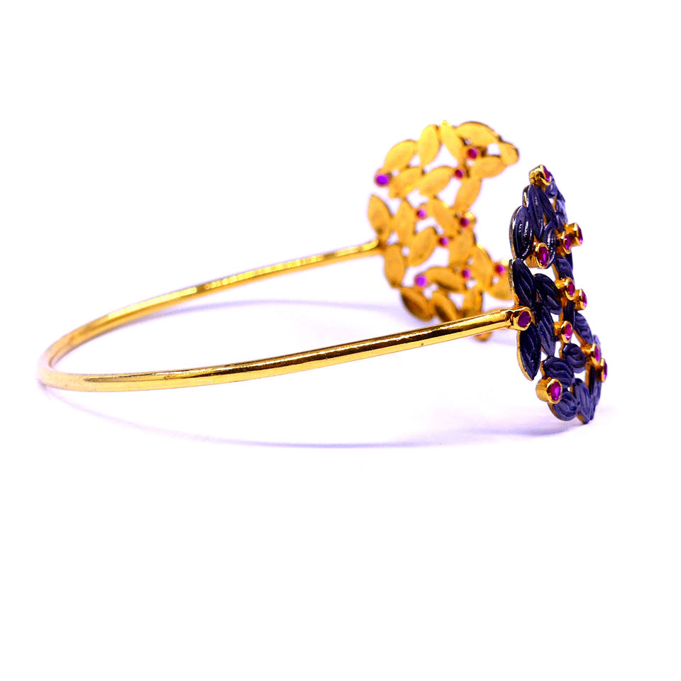 กำไลข้อมือผู้หญิงสไตล์วินเทจคลาสสิกสำหรับงานแต่งงาน เงินแท้ 925 ประดับพลอยทับทิม ชุบทอง ดีไซน์ทันสมัยแบบดั้งเดิม