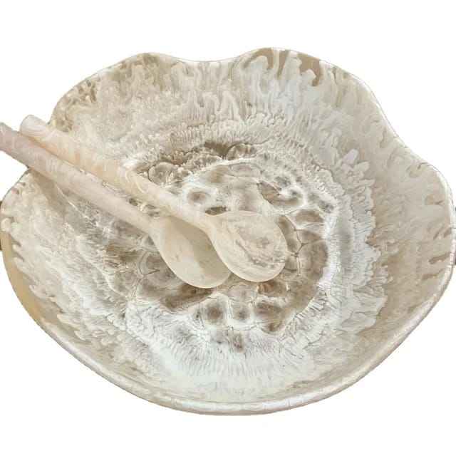 Classic Wave Design White Resin Serving Bowl Fruit Salad Bowls Best Quality Dinnerware Bowl Trending Bowl Indian Handmade
