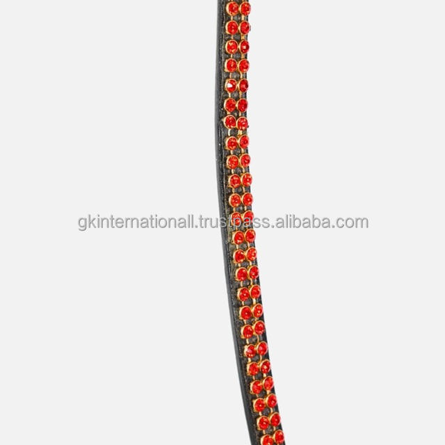 ที่คาดคิ้วหนังอังกฤษสีดำรูปคลื่นแบบคลาสสิกที่กำหนดเองด้วยคริสตัลสีแดงประกายระยิบระยับ