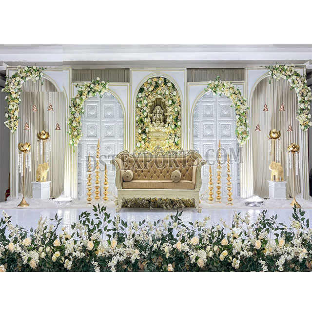 แผงแกะสลักสีขาวคลาสสิกสำหรับเวทีแต่งงาน