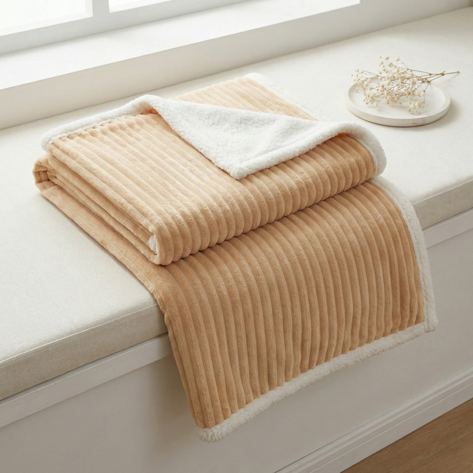 ชื่อสินค้า:ผ้าห่มผ้าสำลีลายริ้ว 3 มิติ แจ็คการ์ด บอนด์ด้วยผ้ากำมะหยี่ Shu