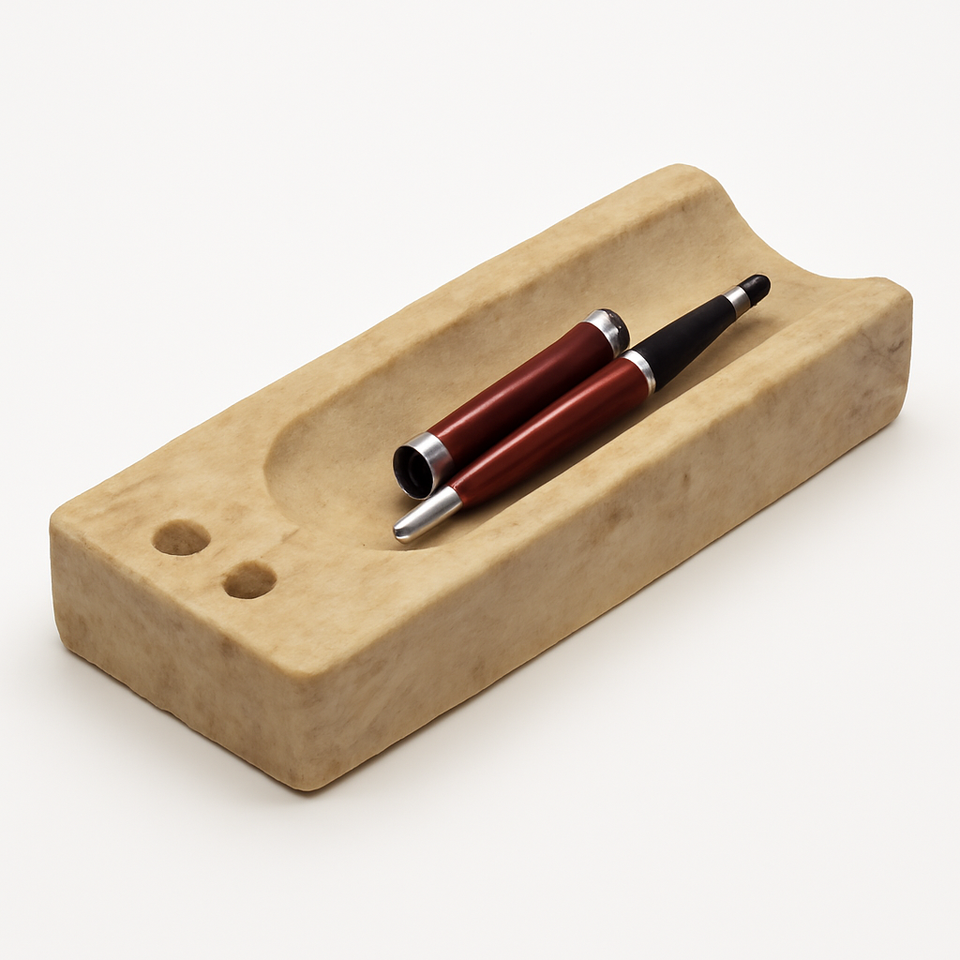 ถาดปากกาหินอ่อนสีขาวคลาสสิกพร้อมที่ใส่ปากกาสองอันที่จัดระเบียบโต๊ะอย่างหรูหราสำหรับเครื่องมือการเขียนและที่เก็บปากกาในสำนักงาน
