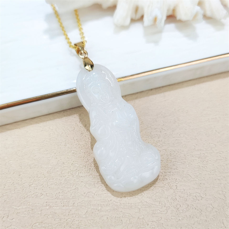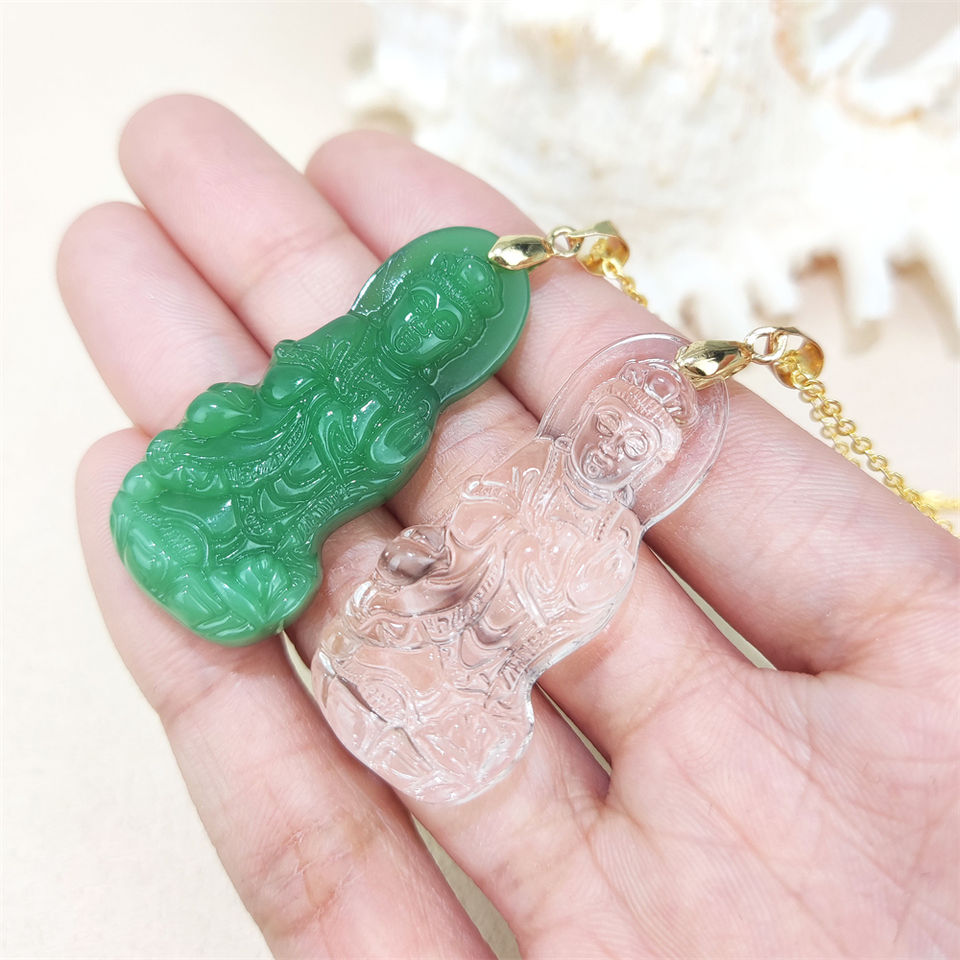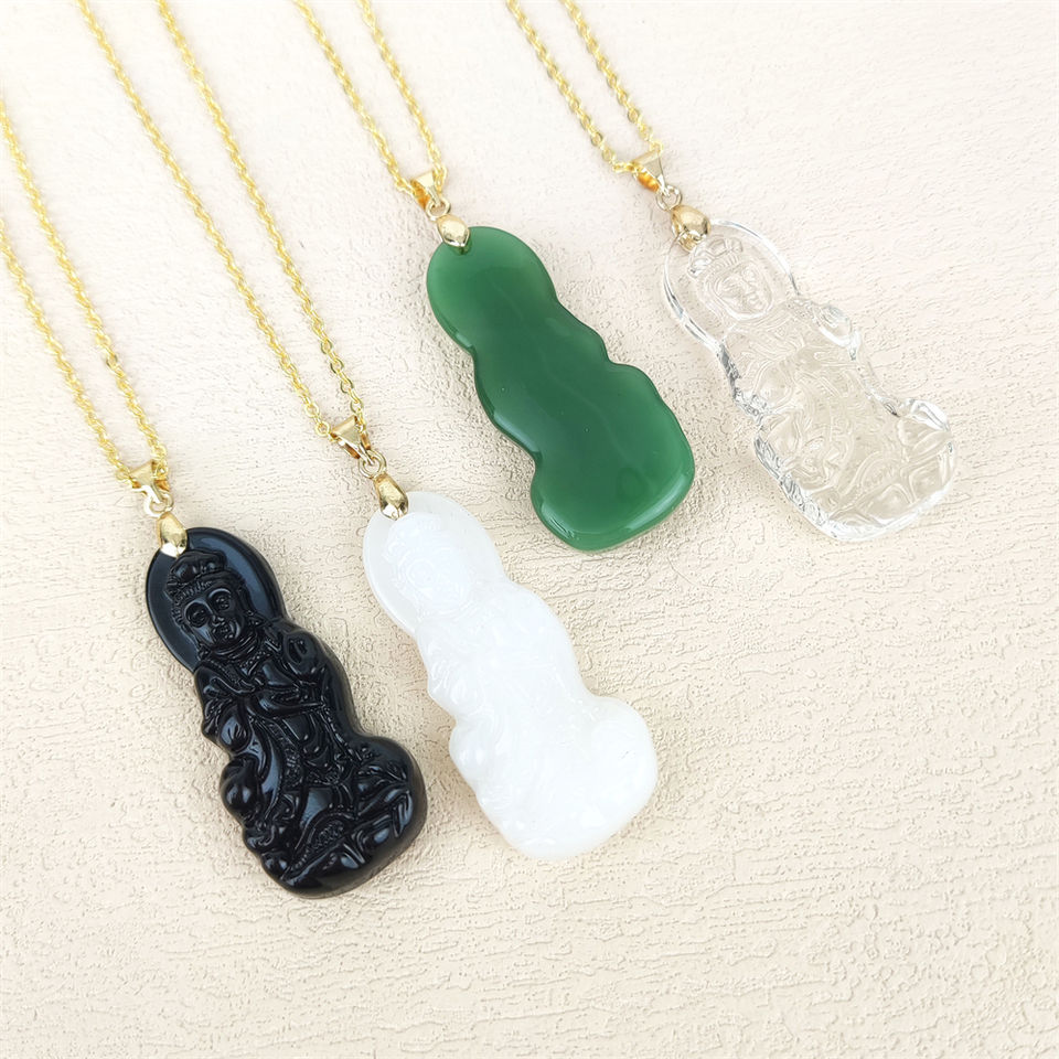 Classic Wholesale Price Guanyin Engraved Green Jade Pendant Synthetic Quartz Black Crystal Guanyin Buddha Pendant Necklace Gift