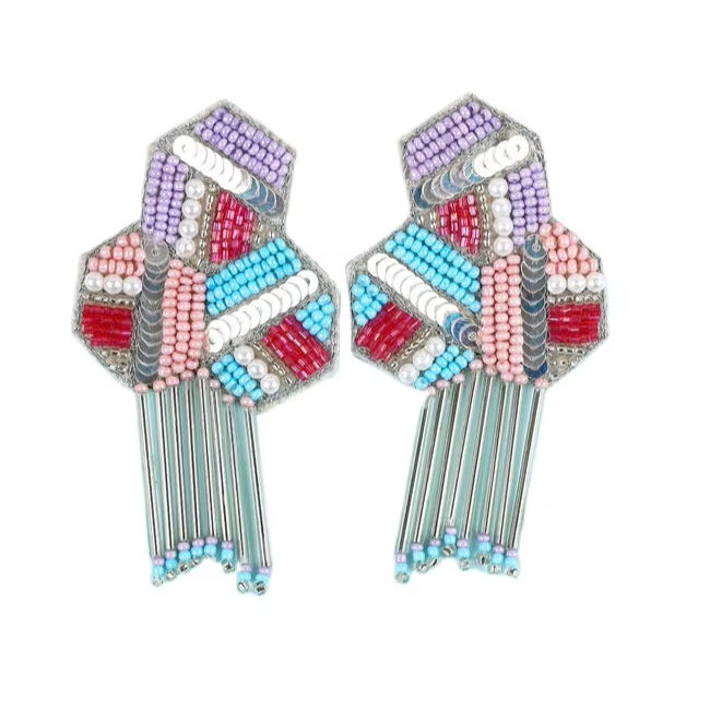 ต่างหูเม็ดกลมลูกปัดดีไซน์คลาสสิกประดับเลื่อมและลูกปัดสำหรับผู้หญิงเด็กผู้หญิงเครื่องประดับแฟชั่นทำด้วยมือปักจากอินเดีย