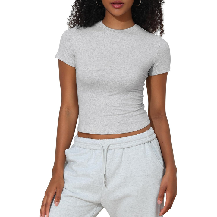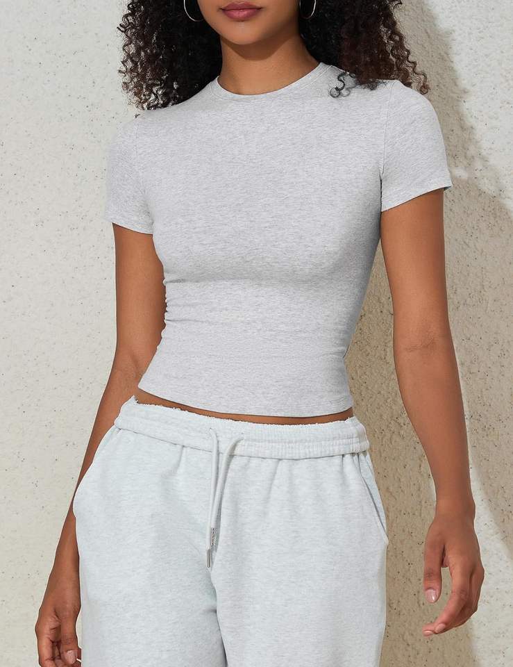 เสื้อยืดแขนสั้นผู้หญิงลำลอง ผ้าฝ้ายนุ่ม น้ำหนักเบา แฟชั่นทันสมัย สีพื้น ทรงครอป สวมใส่สบาย ใช้ได้ทุกวัน เสื้อเบสิค