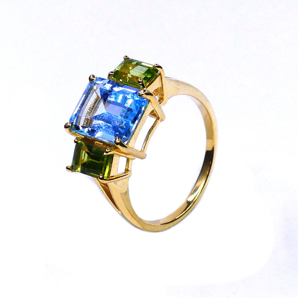 แหวนเงินสเตอร์ลิง925ของผู้หญิงคลาสสิกชุบทองด้วยหินบุษราคัมและเพอริดอทอัญมณีชุดเครื่องประดับแฟชั่น