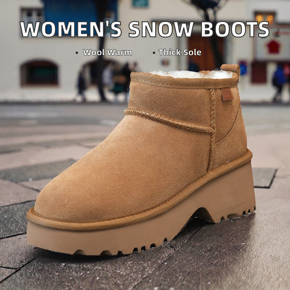 รองเท้าบูทหุ้มข้อหนังวัวแท้สำหรับผู้หญิง รุ่นคลาสสิก พื้นรองเท้าแบบแบนทรงเมอร์เมด บุขนแกะแท้ ใส่สบาย อุ่นสบายสำหรับฤดูใบไม้ร่วงและฤดูหนาว
