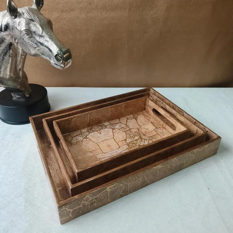 ถาดไม้ลายพิมพ์คลาสสิกพร้อมช่องเก็บของ 1 ช่อง สำหรับตกแต่งโต๊ะ ใช้ในบ้าน สำนักงาน หรือห้องรับประทานอาหาร