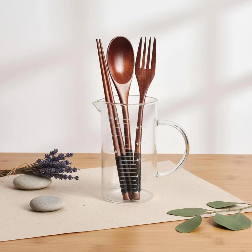 ชุดช้อนส้อมมีดไม้คลาสสิก ทนทาน เป็นมิตรกับสิ่งแวดล้อม เหมาะสำหรับใช้ในบ้าน ห้องครัว และโต๊ะอาหาร