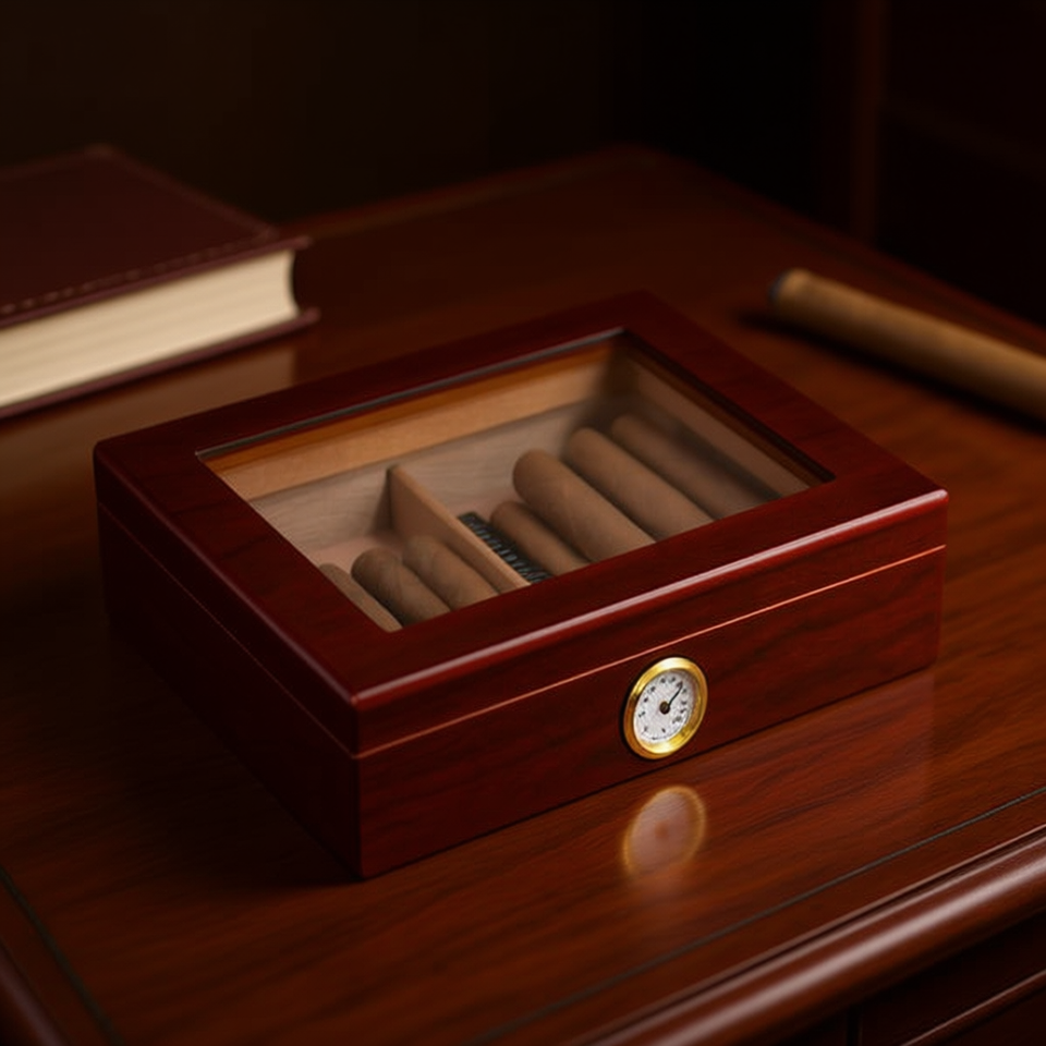 กล่องเก็บซิการ์ไม้แบบคลาสสิก พร้อมไฮโกรมิเตอร์ รูปทรงสี่เหลี่ยมผืนผ้า เคลือบเงา บรรจุซิการ์ได้ 30-35 ซิการ์