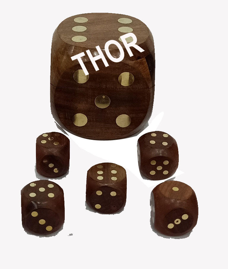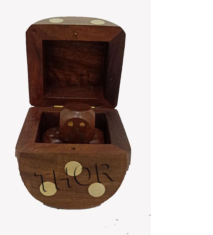กล่องลูกเต๋าไม้คลาสสิกพร้อมชุดลูกเต๋า5ชุด,ชุดเกมลูกเต๋าน่ารักชุดของขวัญในบ้านทองเหลืองสีน้ำตาล