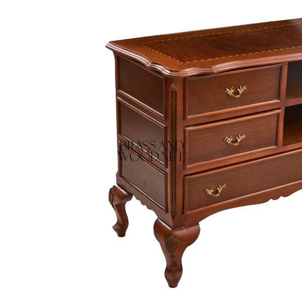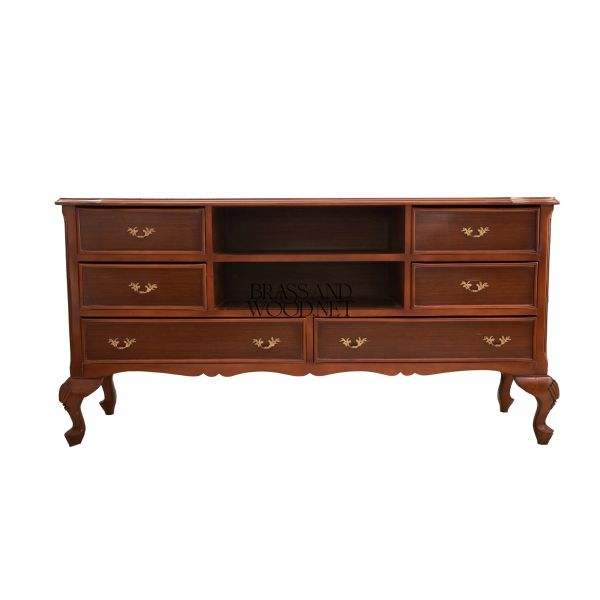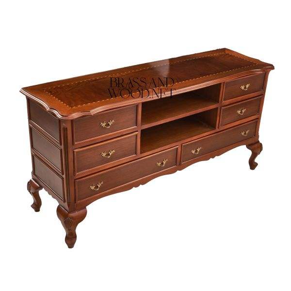 ตู้วางทีวีไม้คลาสสิกพร้อมลิ้นชักและช่องเก็บของหลายช่อง