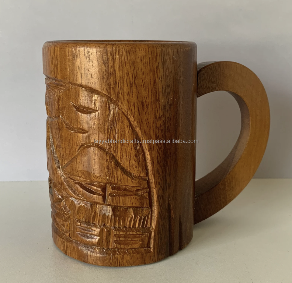 แก้วเบียร์ไม้คลาสสิก งานแฮนด์เมดจากอินเดียโดย Tayyab Handicraft (50 ชิ้น) สำหรับใช้ในครัวหรือเป็นของขวัญทางธุรกิจ