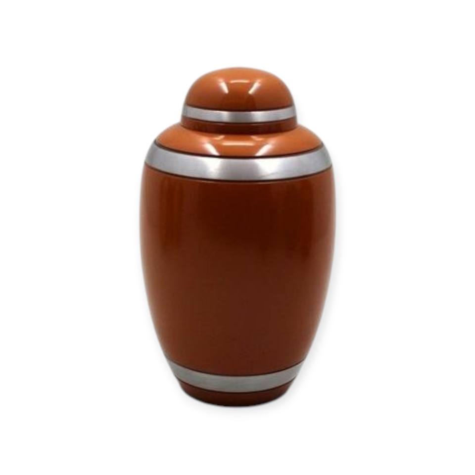 โกศไม้คลาสสิกสีธรรมชาติ พร้อมแถบเงินตกแต่งเพื่อการระลึกถึงและเป็นที่ระลึกอันเหนือกาลเวลา