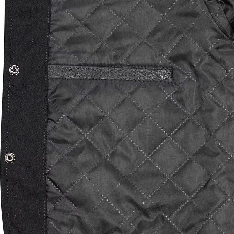 แจ็กเก็ตเบสบอลวิทยาลัยสำหรับผู้ชายมีแขนเสื้อหนังสีดำสีแดงขนแกะแบบคลาสสิก