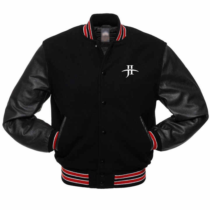 แจ็คเก็ตเลตเตอร์แมนผ้าวูลคลาสสิก แขนหนัง แต่งขอบยางยืด สำหรับผู้ชาย แจ็คเก็ตวาร์ซิตี้ผ้าวูลผู้ชายแบบ OEM