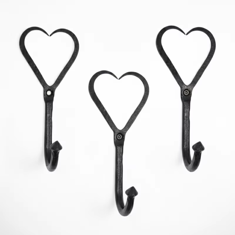 ตะขอแขวนผนังรูปหัวใจเหล็กดัดแบบคลาสสิก ราวแขวนเสื้อผ้าตกแต่ง ตะขอแขวนผ้าขนหนูเหล็กสีดำ สำหรับตกแต่งบ้าน