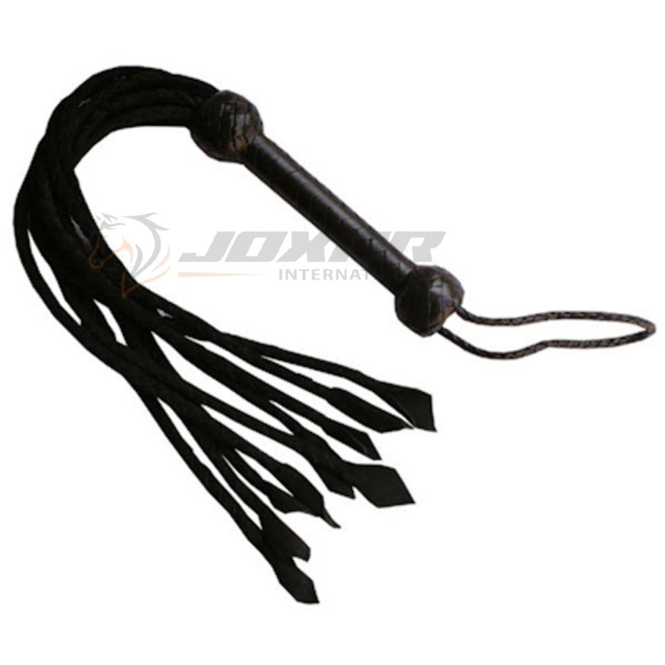 แส้ฟล็อกเกอร์สีดำคลาสสิกพร้อมหางหนังยาวและด้ามจับเสริมถูกสร้างขึ้นเพื่อการควบคุมที่ทนทานและความสะดวกสบายในการเล่น