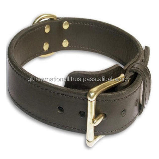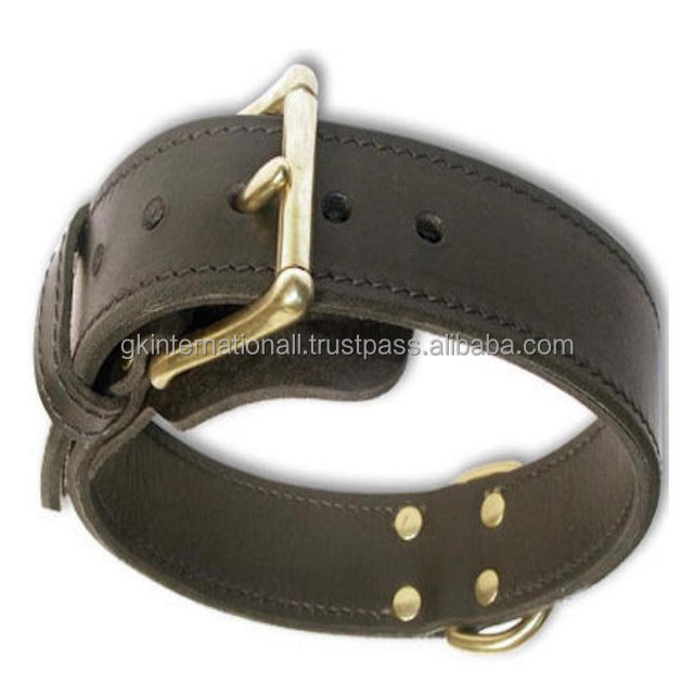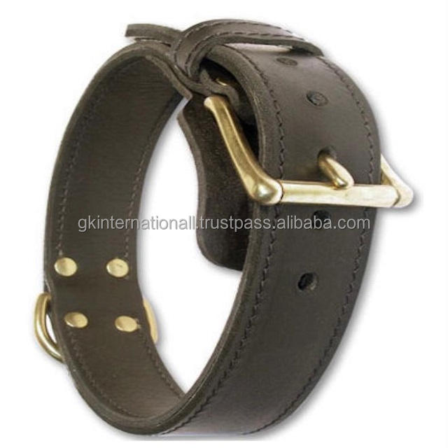 ปลอกคอสุนัขหนังแท้2ชั้น,ปลอกคอหนังสุนัขเย็บติดและปรับได้แบบคลาสสิกแข็งแรงมาก