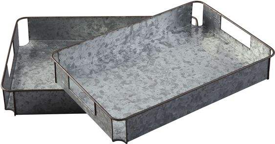 ถาดสังกะสีเครื่องใช้บนโต๊ะพร้อมที่จับถาดชุบสังกะสีดีไซน์คลาสสิก