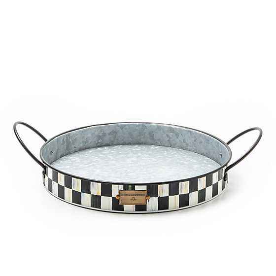 ถาดเสิร์ฟชุบสังกะสีแบบคลาสสิกพร้อมที่จับโลหะแข็งและดีไซน์แบบโบราณที่ยอดเยี่ยมสำหรับการตกแต่งบ้านแบบชนบท