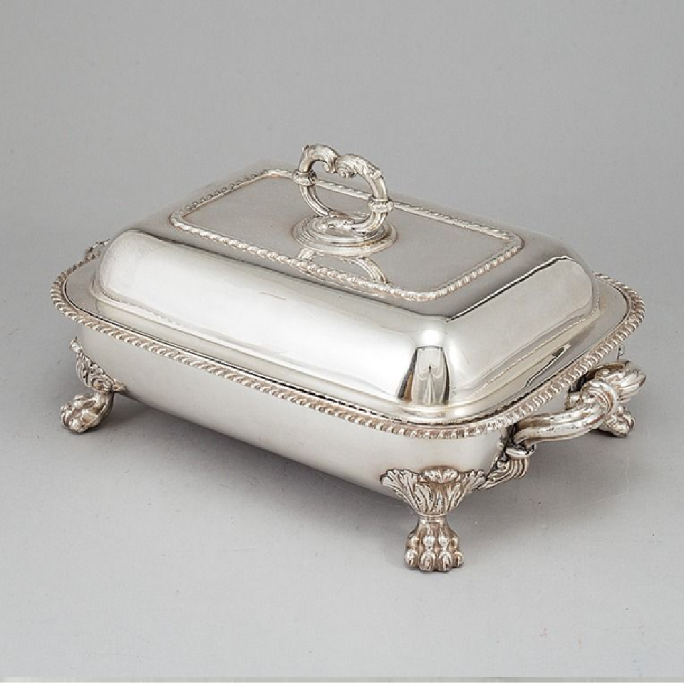 ชามทรงรีคลาสสิกสีเงิน พร้อมขอบลายกัดรอนสุดหรูและหูจับรูปเปลือกหอย จำหน่ายในราคาขายส่ง