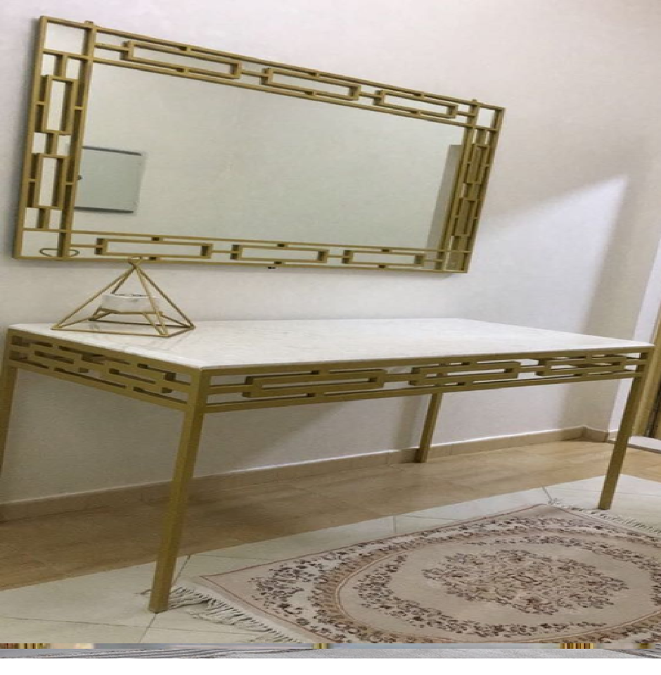 Classic round gold mirror paired with a diamond-patterned console; available at wholesale prices.