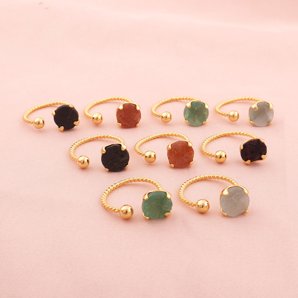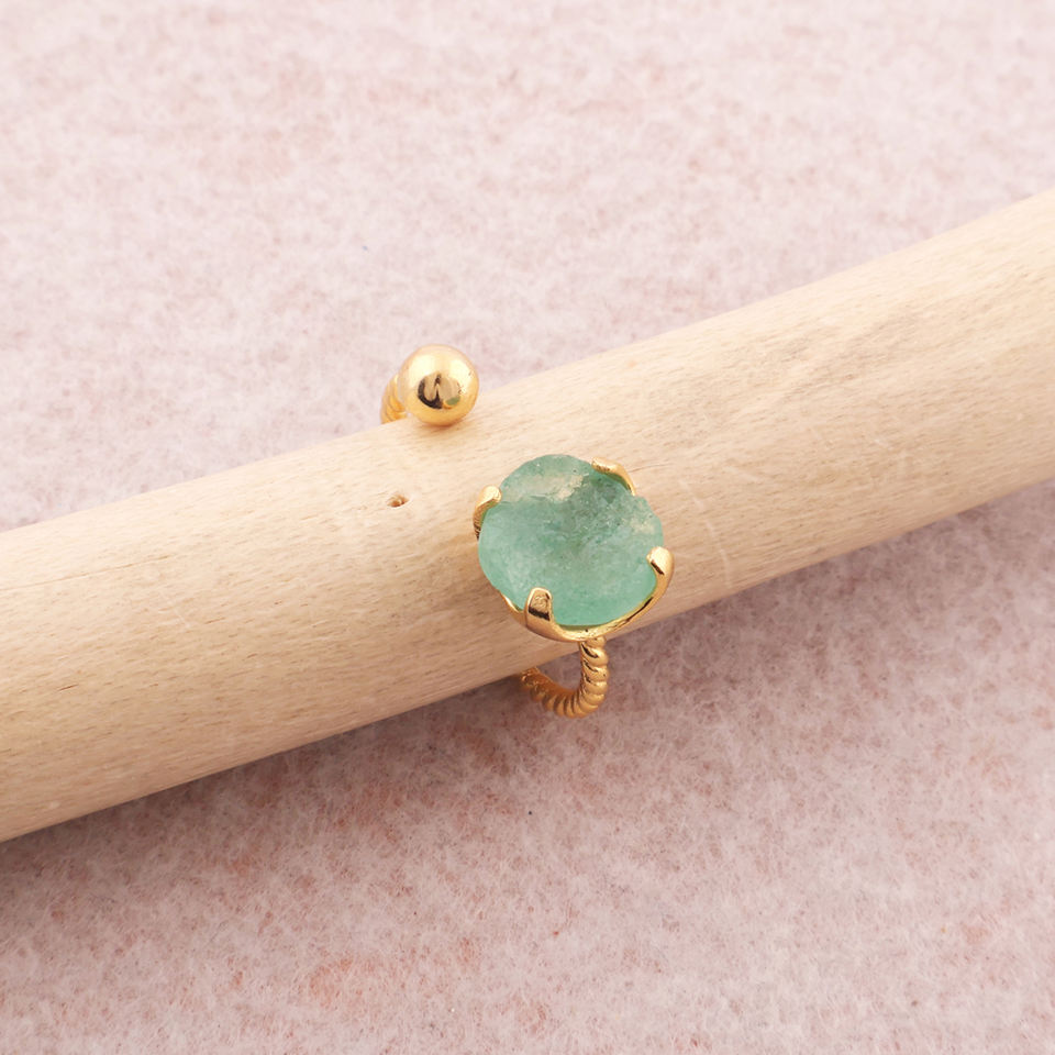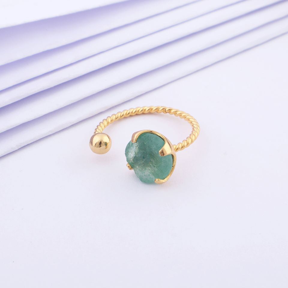 เครื่องประดับอัญมณีกึ่งมีค่าแบบมินิมอลลิสต์ยังไม่ได้เจียระไนแหวนพลอยควอตซ์สีเขียวดิบแบบไม่เจียระไนวงแหวนชุบทอง