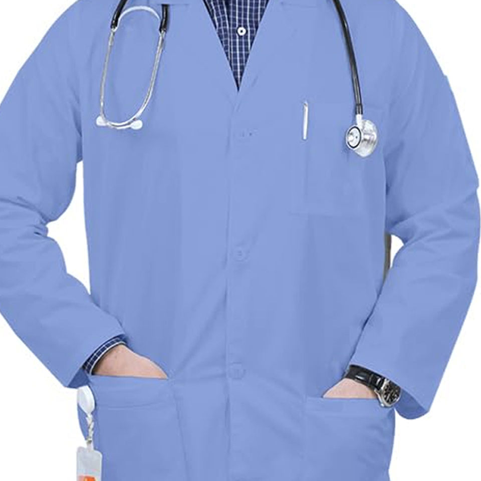 เสื้อโค้ทห้องแล็บผ้าฝ้ายสีขาวคลาสสิกพร้อมแขนยาวมีกระเป๋ายูทิลิตี้ระบายอากาศได้เครื่องแบบโรงพยาบาลสำหรับแพทย์พยาบาลช่างเทคนิค
