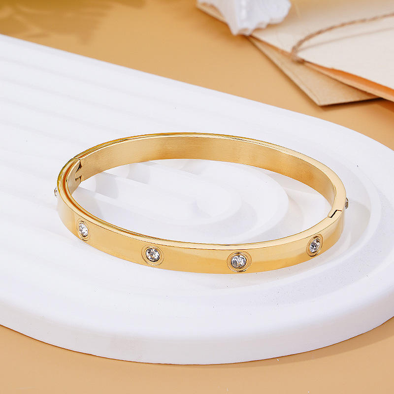 กำไลข้อมือเพชรคิวบิกเซอร์โคเนียแบบคลาสสิกขนาด 6 มม. กำไลไทเทเนียมขัดเงาคุณภาพสูงสำหรับผู้หญิง ของขวัญ