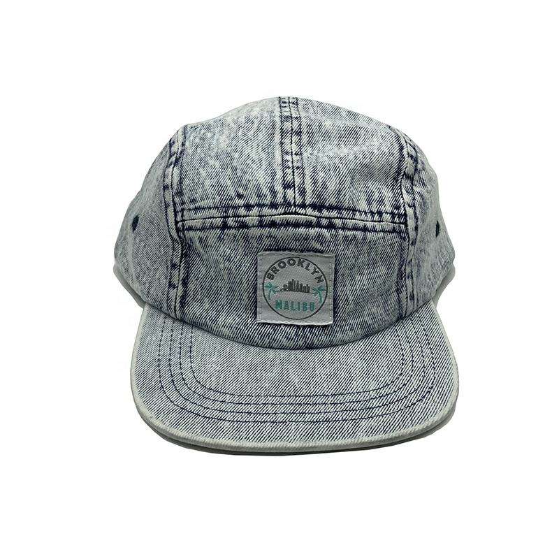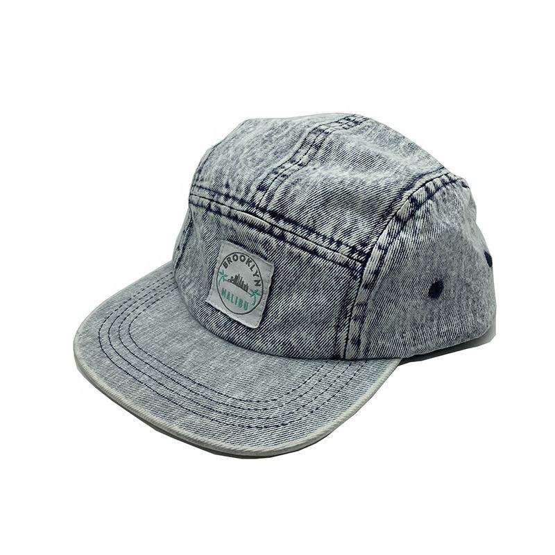 หมวกแก๊ปเดนิมสีน้ำเงินคลาสสิคแบบฟอกสี 5 ชิ้น พร้อมป้ายโลโก้แบบกำหนดเองสำหรับเด็ก