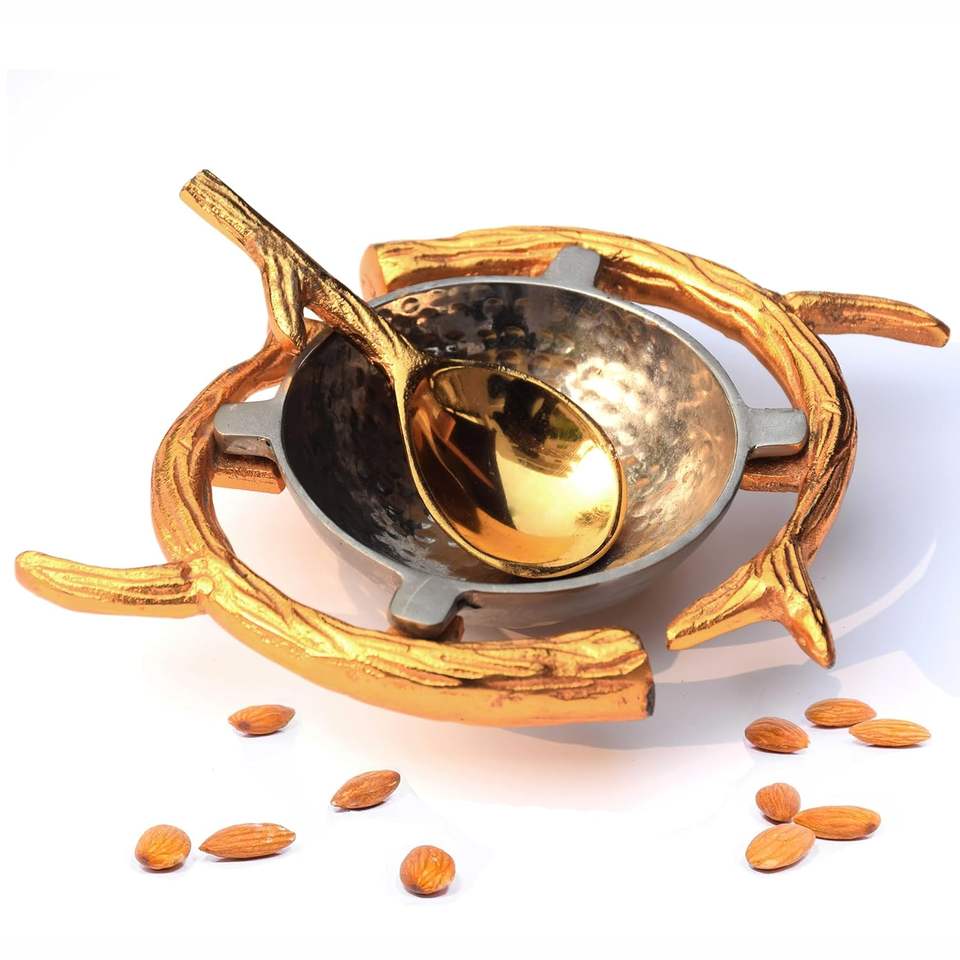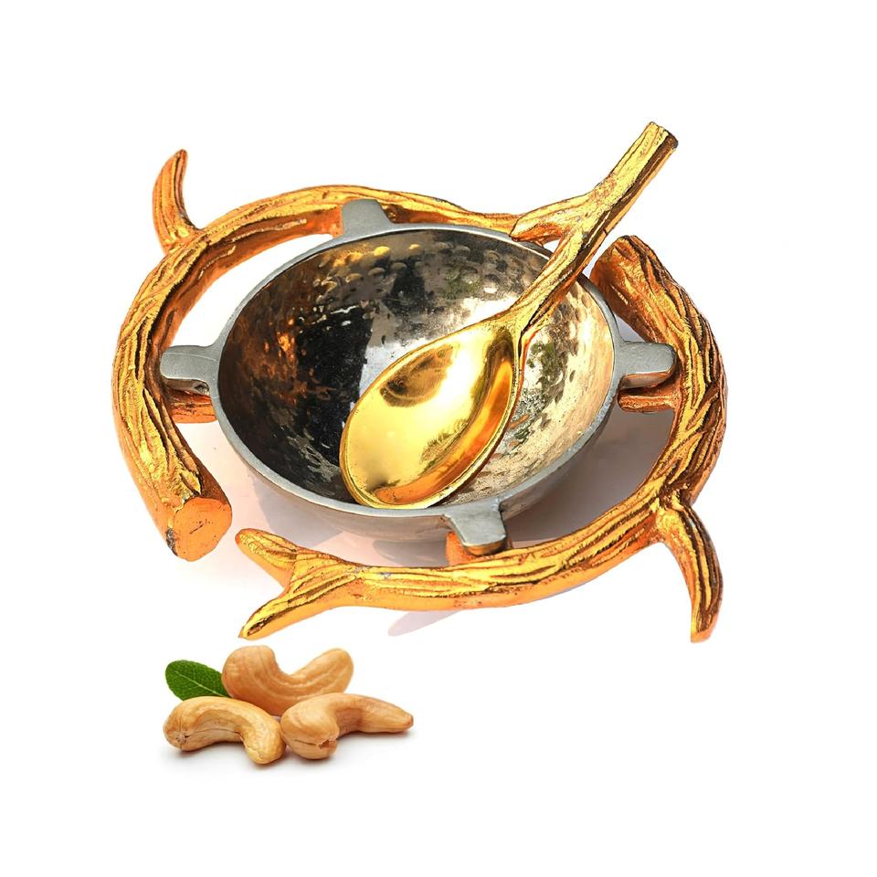 ชามผลไม้ทองเหลืองคลาสสิกพร้อมการออกแบบพื้นผิวเครื่องวางบนโต๊ะกลางผลไม้เสิร์ฟข้าวโพดคั่วฐานโลหะ