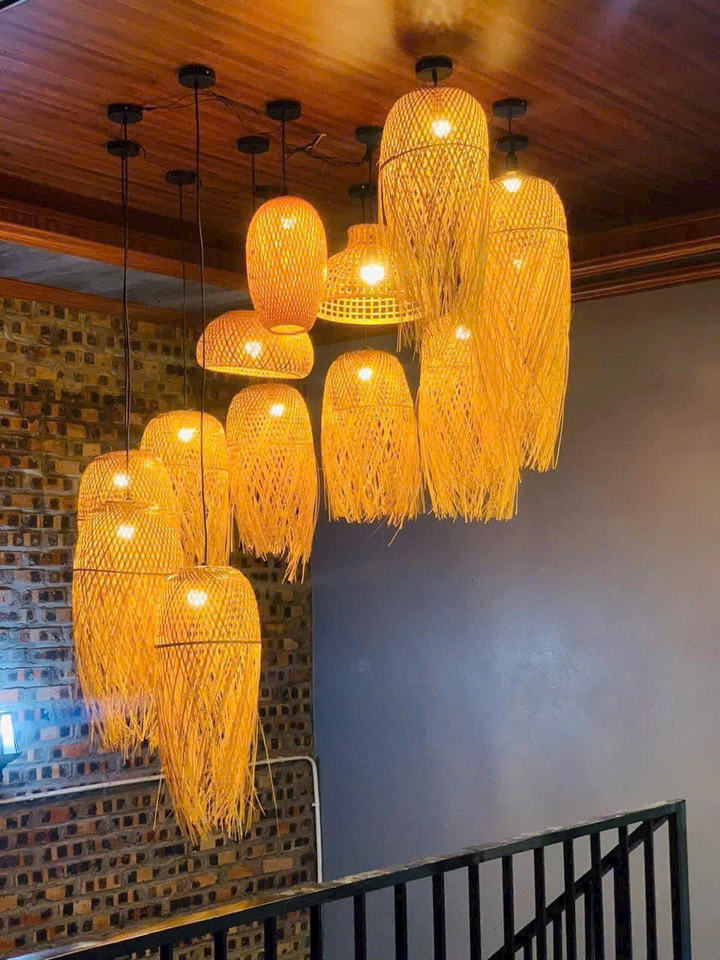 โคมไฟไม้ไผ่คลาสสิกทำด้วยมือโคมไฟทำจากไม้ไผ่สำหรับบ้านผลิตในฟาร์ม