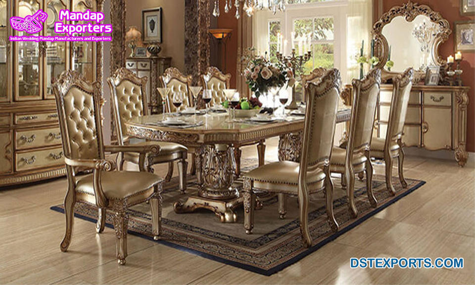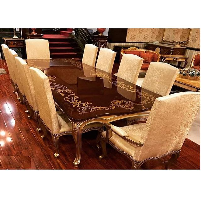 ชุดโต๊ะรับประทานอาหารแกะสลักด้วยมือลายหินอ่อนคลาสสิกหรูหราทันสมัยทำจากไม้สักเคลือบเงาปรับขนาดและสีได้