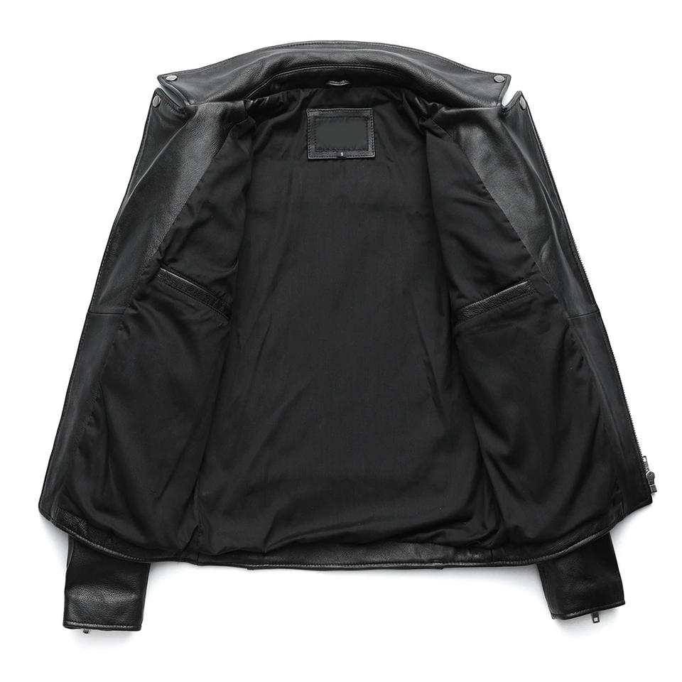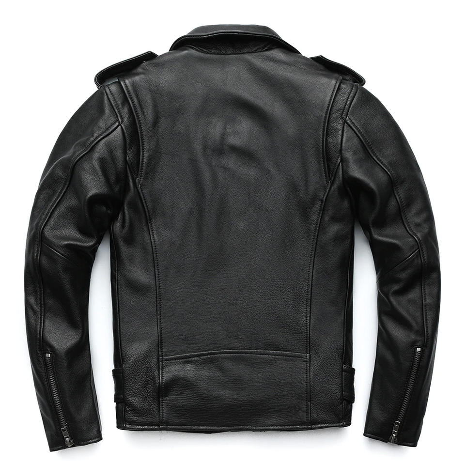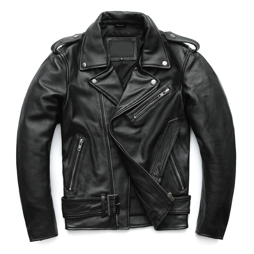 แจ็คเก็ตมอเตอร์ไซค์คลาสสิกสำหรับผู้ชาย แจ็คเก็ตหนังวัวแท้ 100% หนา เสื้อแจ็คเก็ตมอเตอร์ไซค์สำหรับฤดูหนาว