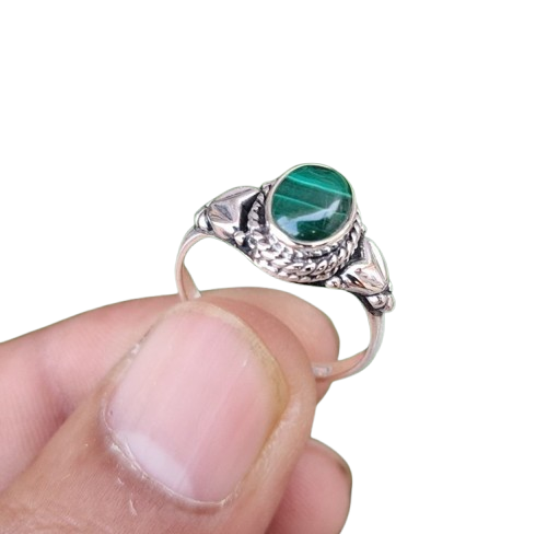 เครื่องประดับแหวนคลาสสิกสำหรับผู้หญิงเครื่องประดับเงินสไตล์โบโฮ925เงินสเตอลิงอัญมณีมาลาไคต์ของขวัญแฮนด์เมดสำหรับภรรยา
