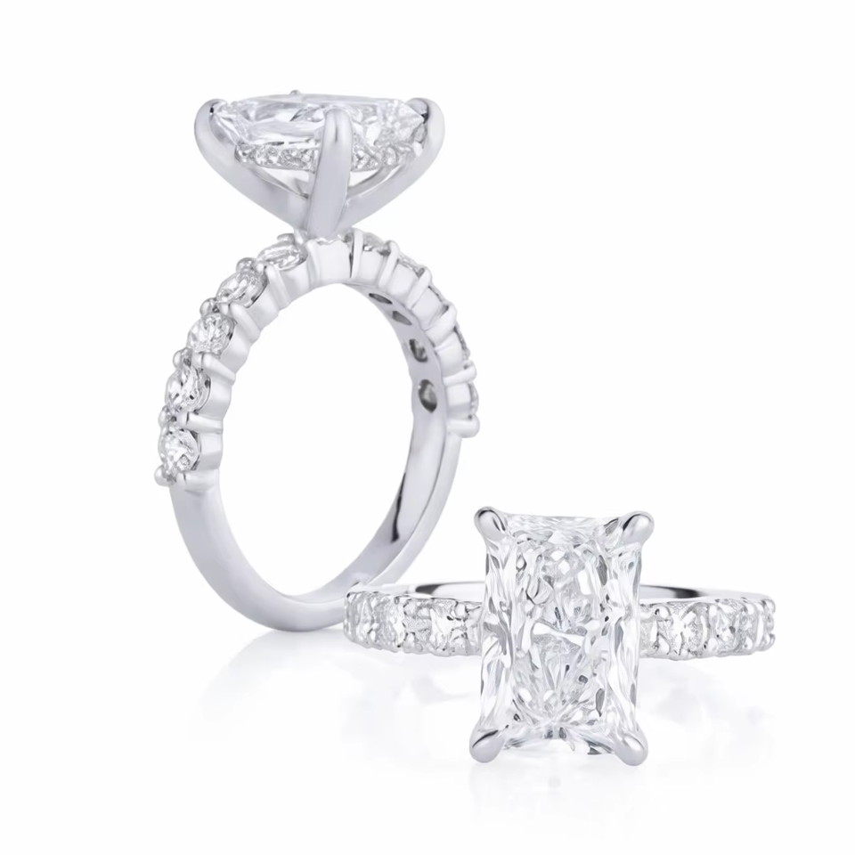 แหวนแต่งงานแบบคลาสสิคทรงสี่เหลี่ยมประดับเพชร CZ รูปทรงเรเดียนท์คัท ดีไซน์เรียบหรู วัสดุเงินแท้ 925 รุ่นมินิจัสมิน