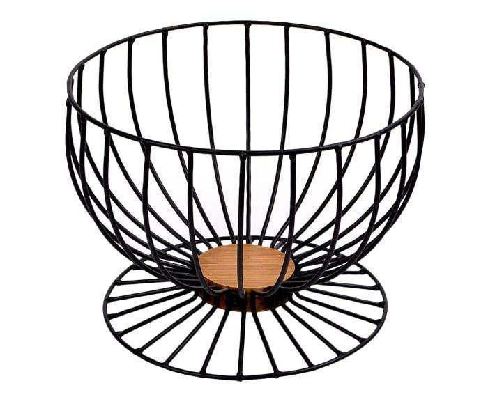 ตะกร้าเหล็กสแตนเลสสีดำแบบคลาสสิก ตะกร้าลวดสำหรับจัดเก็บผลไม้ตกแต่ง โต๊ะอาหารสำหรับใช้ในครัว