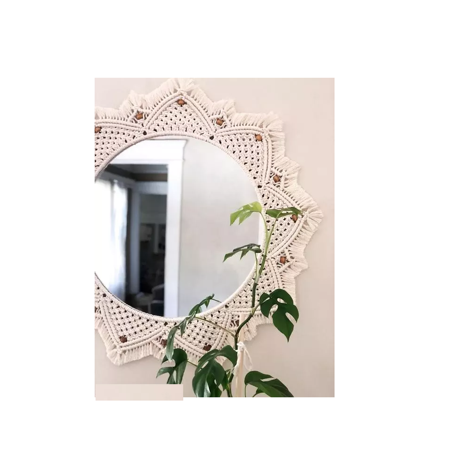 สไตล์คลาสสิกรอบทําด้วยมือตกแต่ง Macrame แขวนกระจกสําหรับห้องนอนห้องนั่งเล่นอพาร์ทเมนท์
