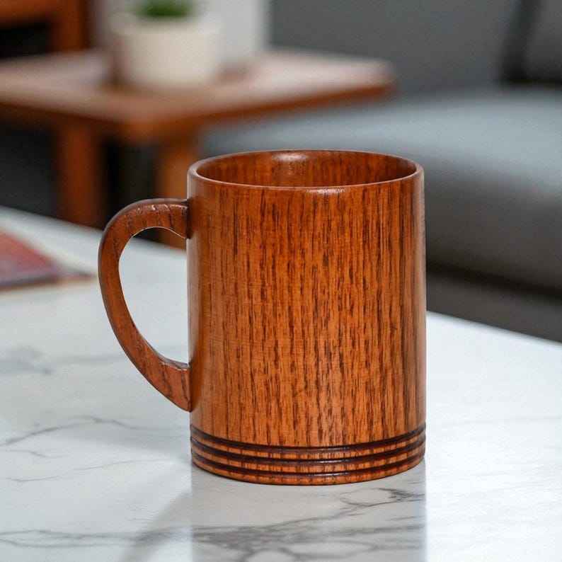 แก้วชาแบบคลาสสิกแก้วใส่เครื่องดื่มเป็นมิตรต่อสิ่งแวดล้อมถ้วยชาไม้พร้อมด้ามจับไม้ถ้วยกาแฟนม