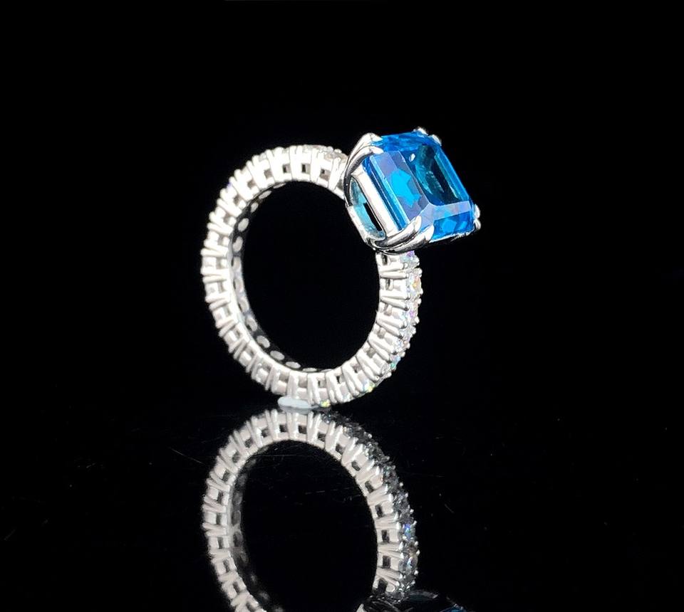 แหวนปลายกรงเล็บสีขาว10K ถึง18K สง่างามแบบคลาสสิกพร้อมเพชรที่ปลูกในห้องปฏิบัติการและหินหลัก CZ