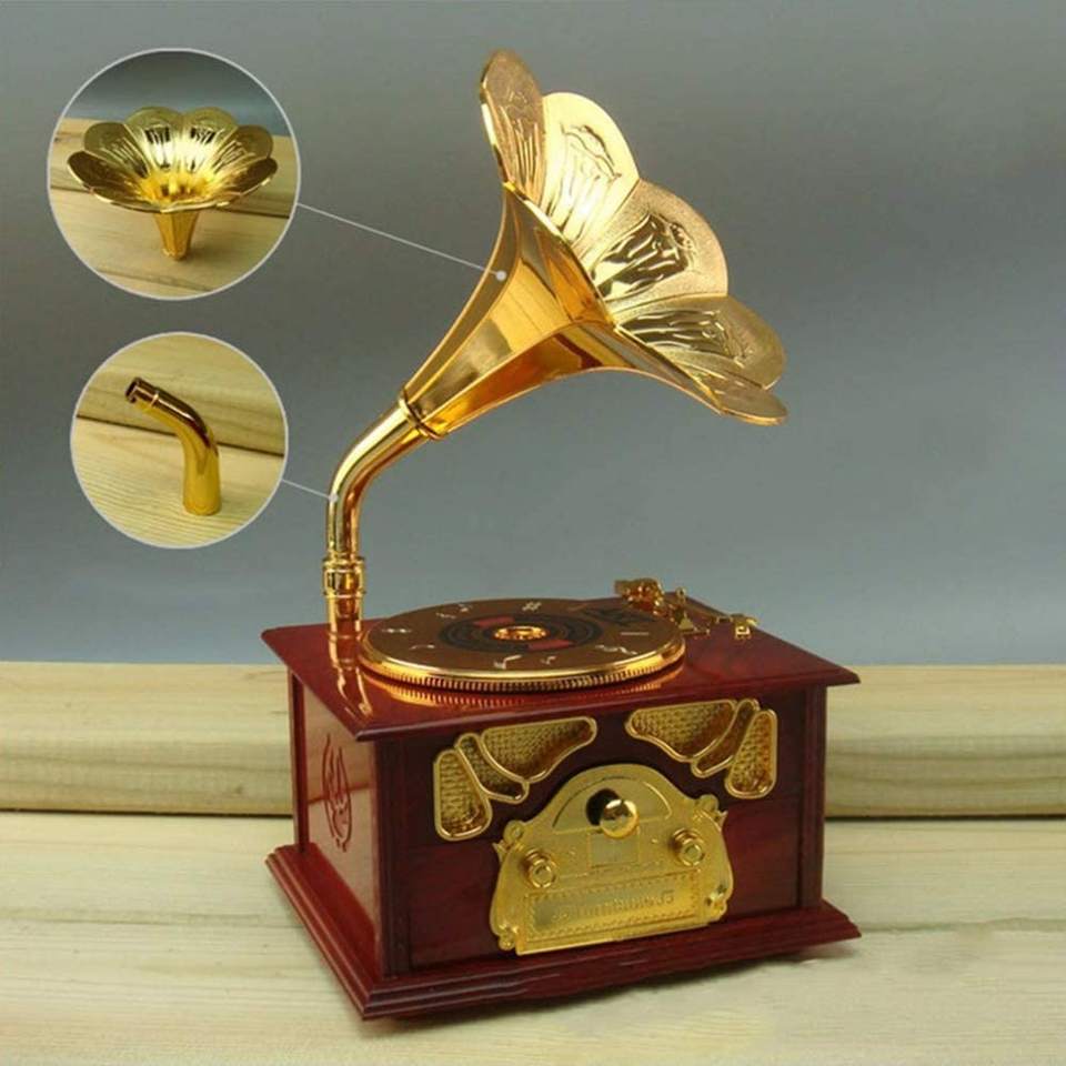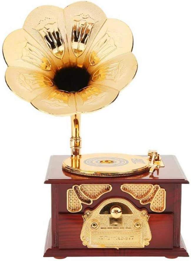กล่องดนตรีแผ่นเสียงทองเหลืองสีน้ำตาลสไตล์คลาสสิกทำมือตกแต่งบ้านสำหรับจัดเก็บเครื่องประดับเครื่องสำอางที่มีทรัมเป็ต