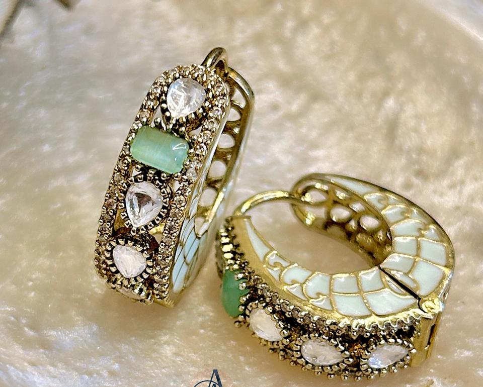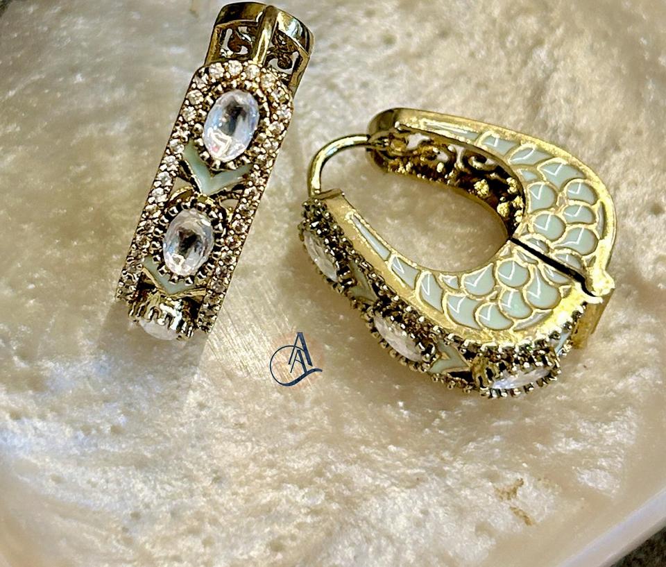 ต่างหูหนีบแบบบาหลีเคลือบทองเหลืองคุณภาพดีที่สุด ดีไซน์ทันสมัย ประดับด้วยมอยส์ซาไนต์และอีพ็อกซี่ เหมาะสำหรับผู้หญิงและเด็กผู้หญิง สวมใส่ในงานเลี้ยงตอนเย็น