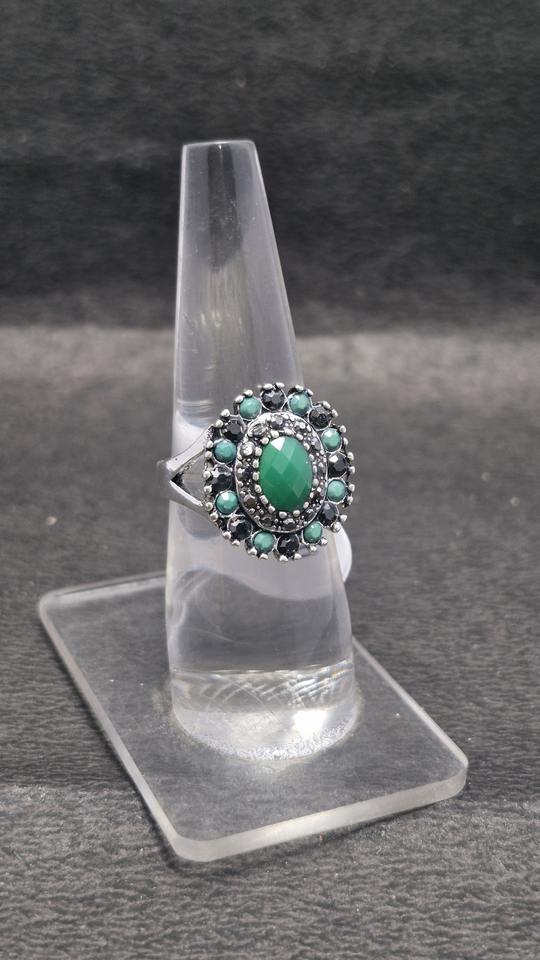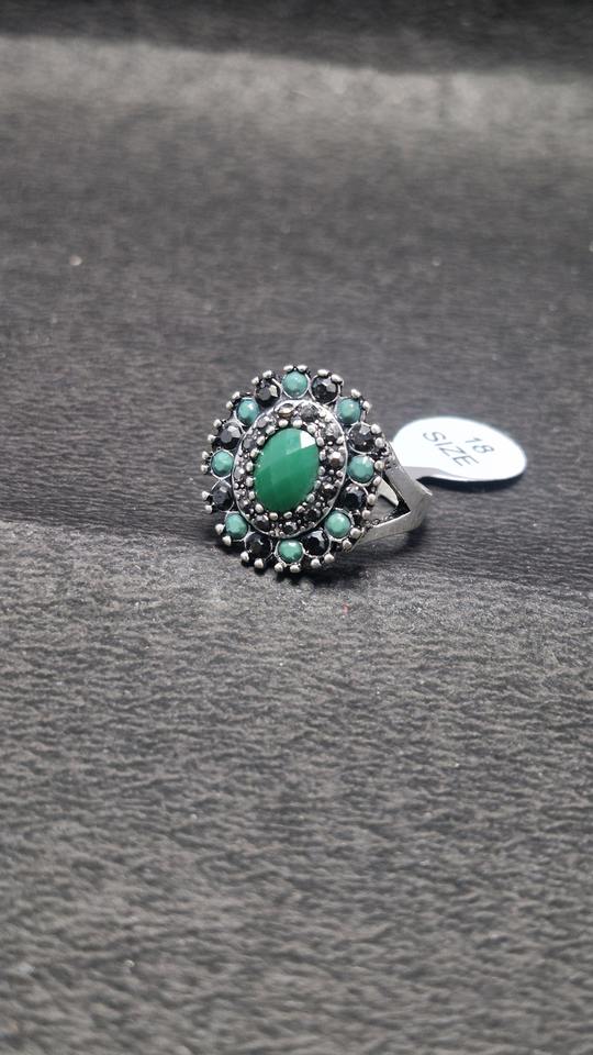 แหวนเงินสเตอร์ลิงประดับพลอยโอนิกซ์สีเขียวดีไซน์สวยสง่าของขวัญเครื่องประดับหรูหรา